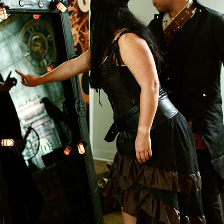 Fun Props: corsets, goggles, lace gloves, monocles, parasols, gear-laden hats, and brass goggles.